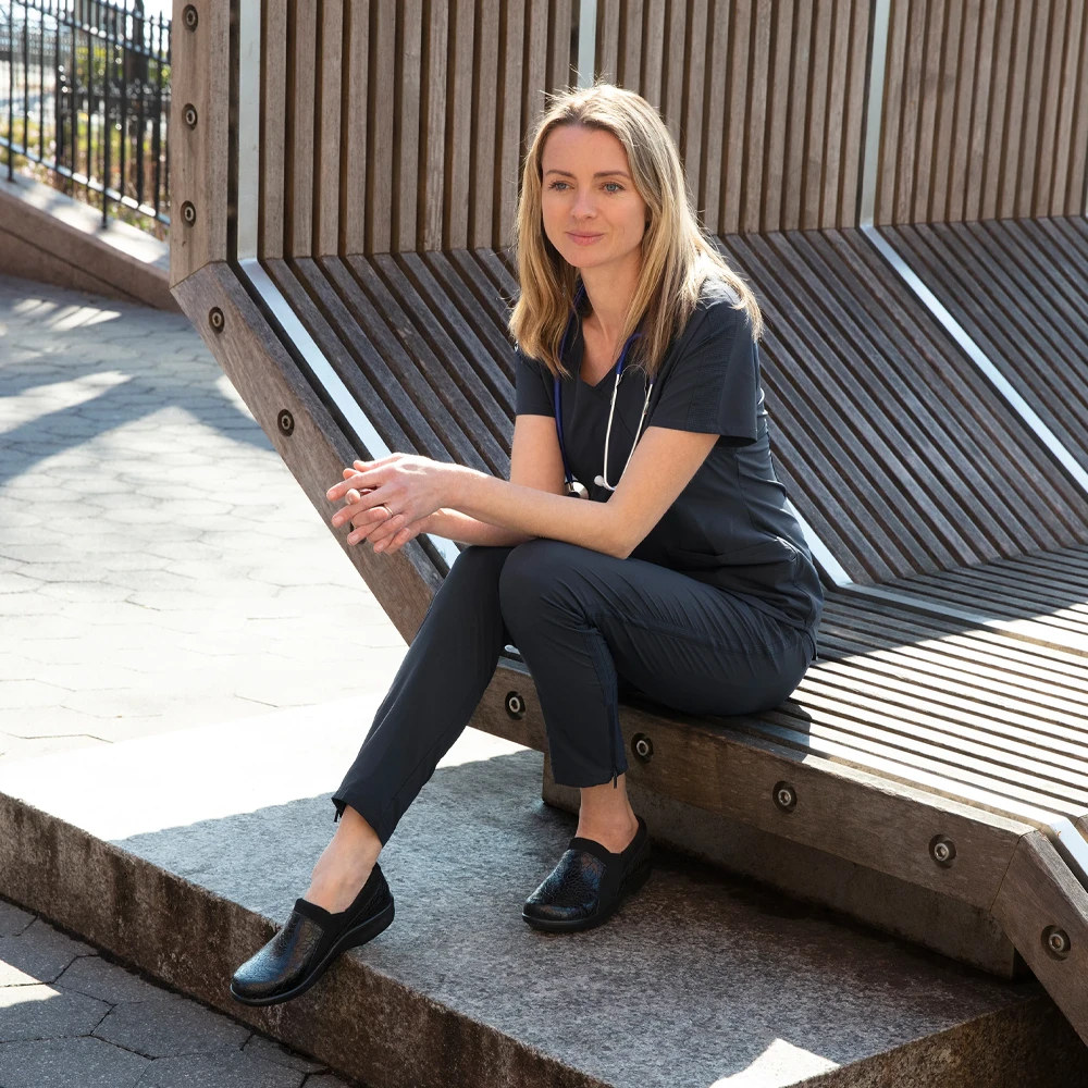 Get ready to add some zip to your step with the Alegria Duette in Flourish Black! Crafted with breathable vegan leather and textile lining, this style comes with plenty of cushioning, thanks to the removable footbed, double elastic gores, and padded collar. Slip-resistant outsole and lightweight polyurethane provide reliable protection and comfort for all-day wear, so you can walk a mile in these shoes and still look oh-so-stylish!