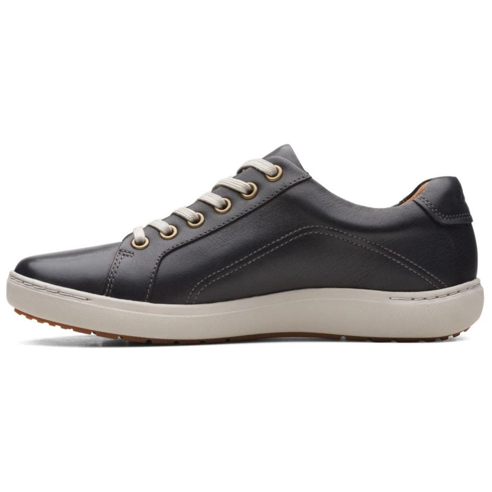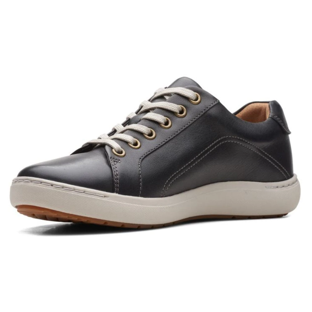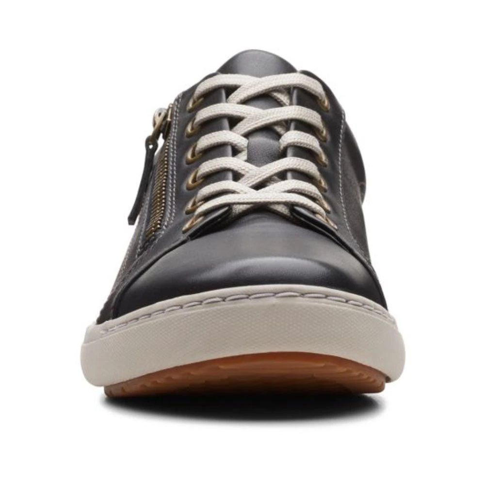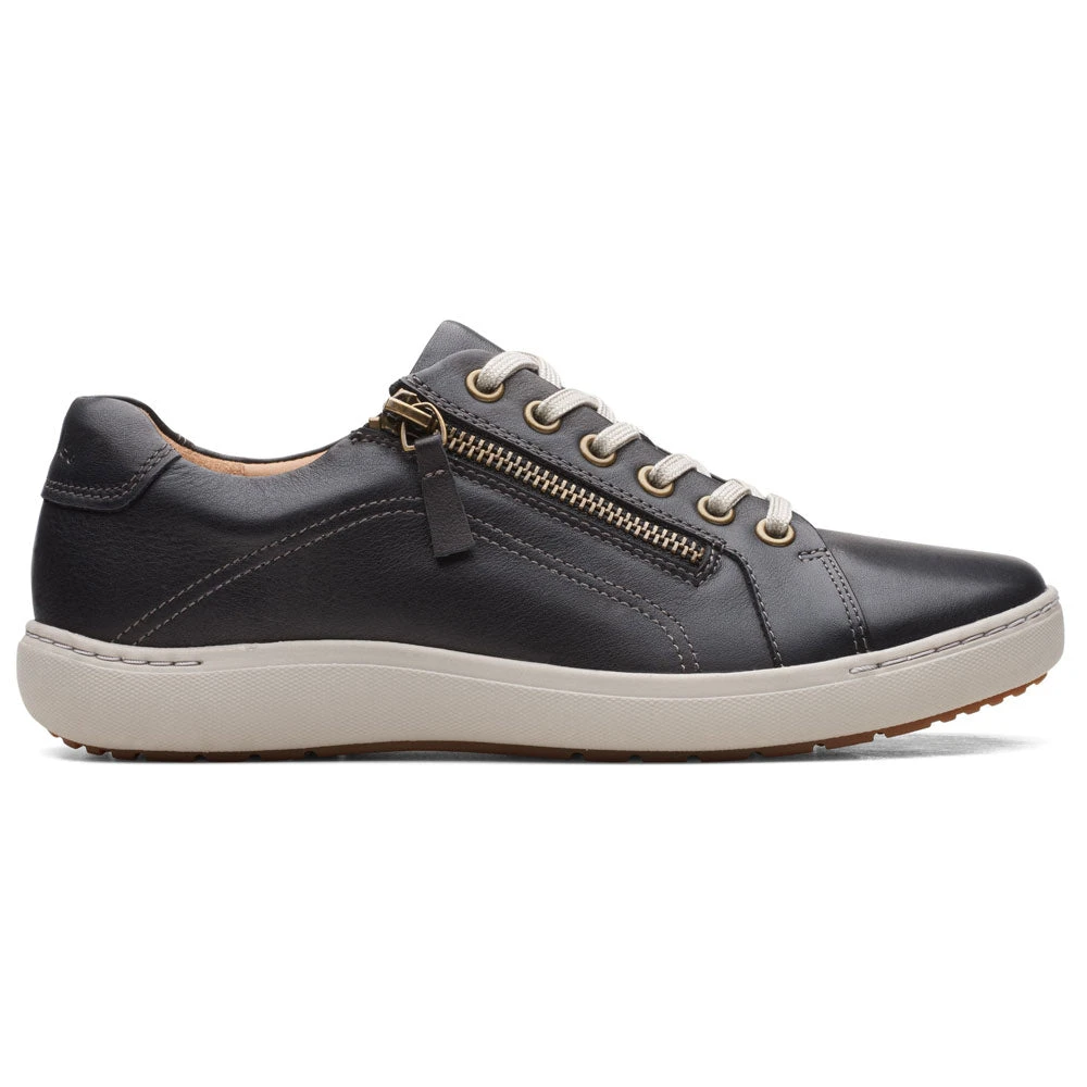 Get the best of both worlds with this adorable lace-up sneaker. The Clarks Nalle Lace is both light-weight and ultra comfortable. With lace-up detail and an easy-access zip, it brings a modern approach to a traditional casual shoe. Ideal for life on-the-go, reinforced leather and arch support team with a grippy, durable rubber sole, and a Contoured Comfort™ footbed and breathable sheep-leather lining ensure cushioning in every step.