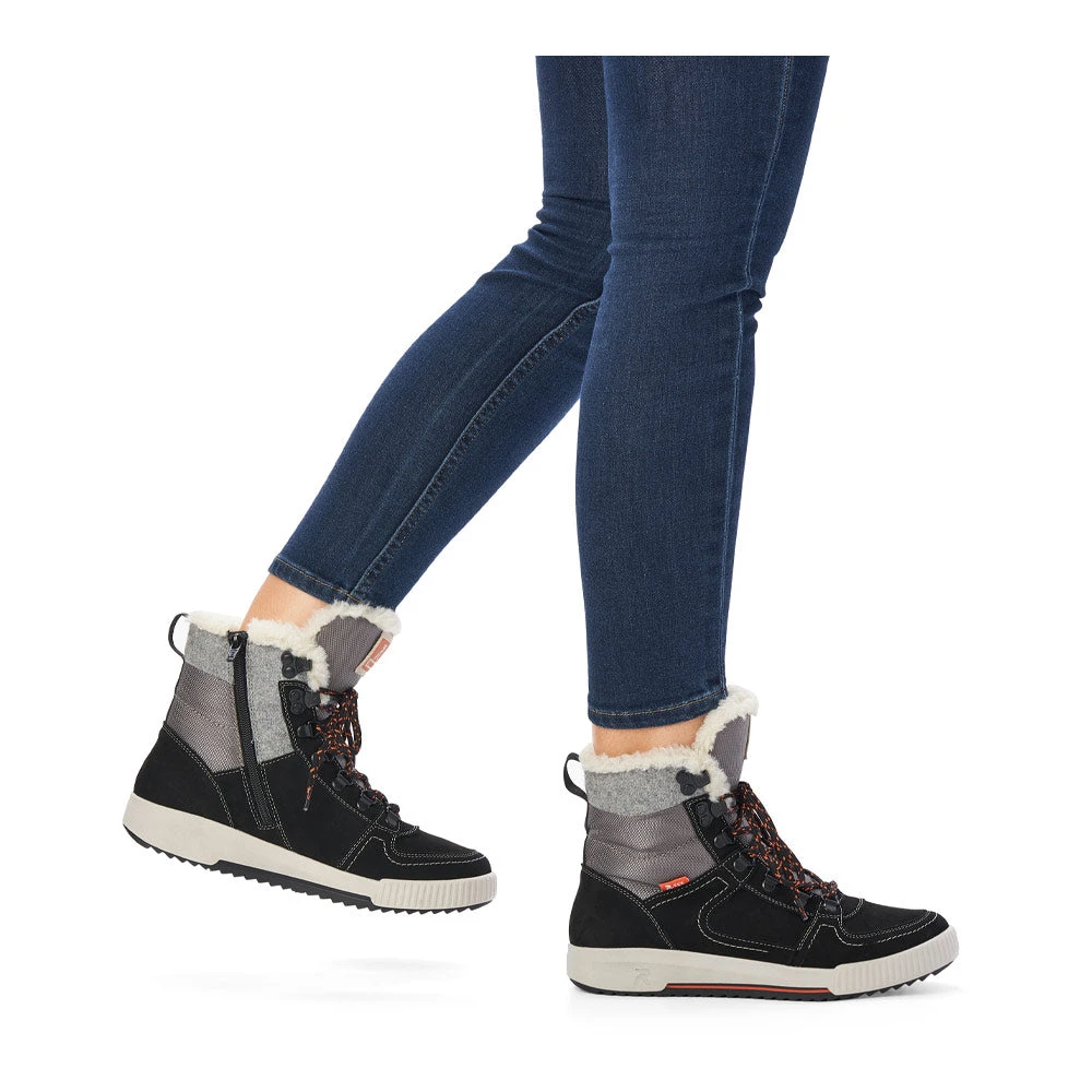 Rieker REVOLUTION is a new line of modern sports boots with a huge emphasis on comfort and convenience even during all-day wear. The Adonia 70 boot has a unique upper that is a combination of leather and textile with stitching that fine-tunes the overall design of the boot. Thanks to the lamb’s wool, they will keep you perfectly warm. Remonte TEX – a functional layer that makes the boot water-resistant yet breathable. Thanks to the inside zipper, you can easily slip into the boot and use the classic laces to tighten it for a customized fit. Pop on a pair for an athleisure, fun look on your next outing.
