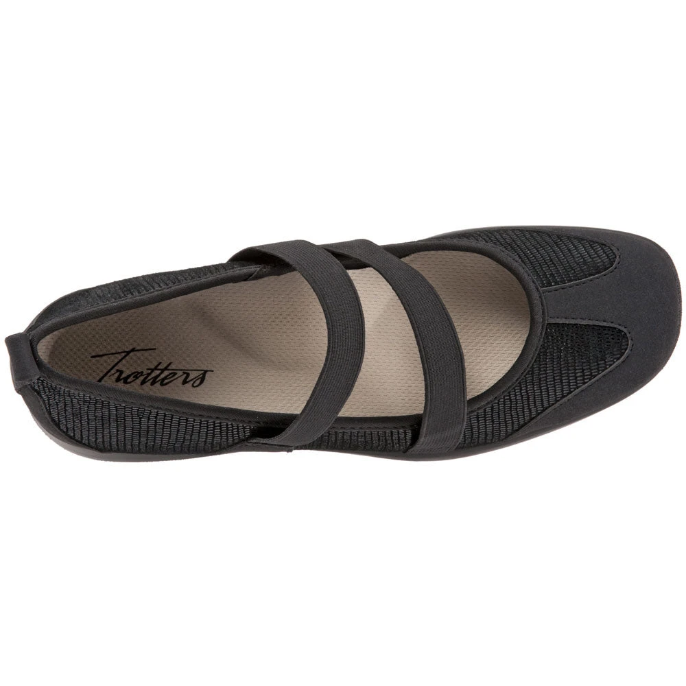 The contrasting tonal textures add a touch of fun in this sporty Mary Jane. Trotters’ proven lightweight sole provides great support, and the dual elastic straps help with fit and function. The soft lined footbed has great arch support and is removable if you use orthotics.